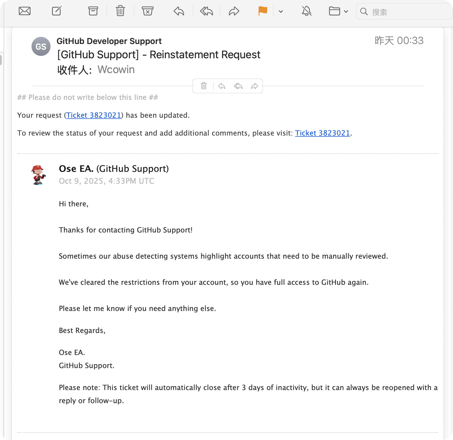 Hello, Mr. or Ms. I would like to clarify first, my account is: https://github.com/Wcowin. I am a college student and I have been using GitHub since my freshman year. Today, I updated my personal blog, and the workflow caused a lag, which was an unintentional action. I thought it was a normal update like usual. I hope you can unblock me.I have used GitHub for four years without any violations. An unintentional workflow submission resulted in my account being flagged, and I am very upset. I hope you can treat me fairly and investigate the truth! Thank you! I hope to receive a reply as soon as possible, thank you!I will continue to maintain the open-source spirit.